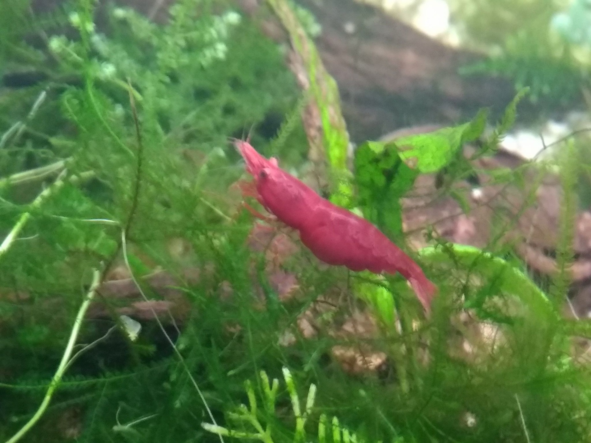 Selektivním chovem vyšlechtěná barevná varieta Neocaridina davidi var. Sakura. Vyznačuje se sytější červenou barvou oproti klasickým Red cherry.